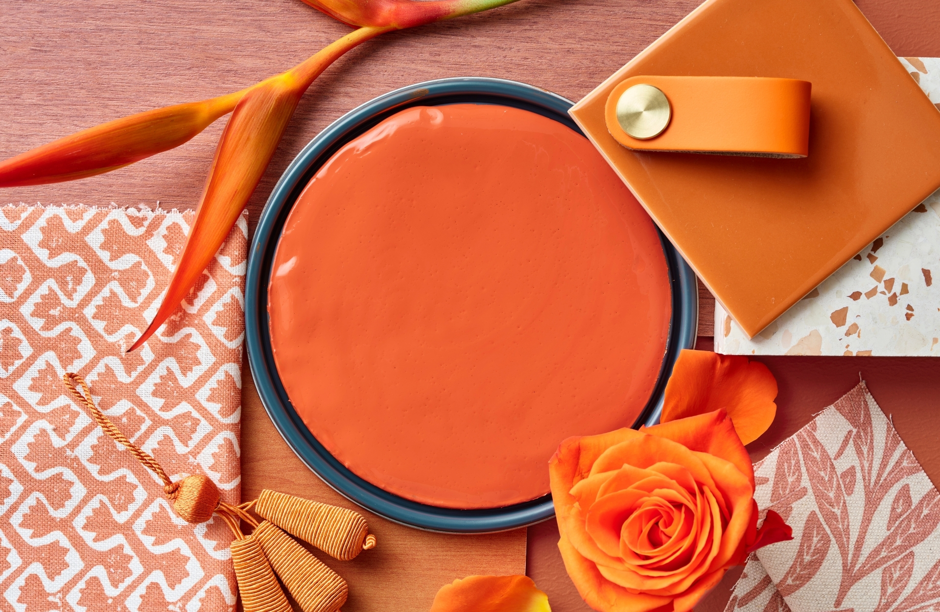 Spiced Tangerine is supported by two complementary 2026 colour predictions – Dewy Eucalyptus and Roasted Butternut – both matched to Benjamin Moore shades.