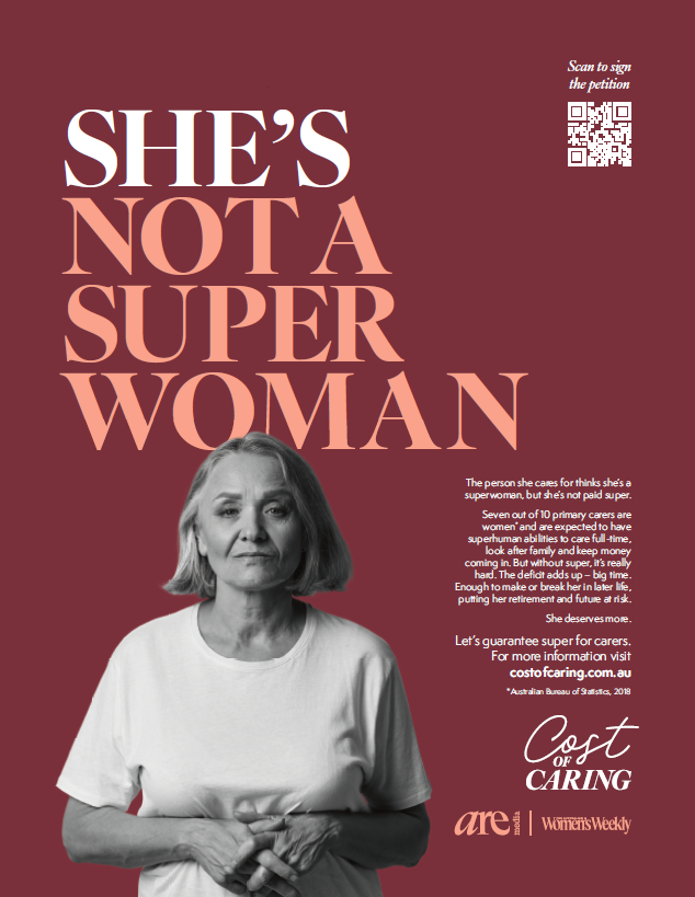 Are Media, Australia’s leading omnichannel content company for women, together with Carers Australia and a coalition of carer support and advocacy groups, are joining forces to call on both the Federal Government and the Opposition to add superannuation to the fortnightly Carers Payment.